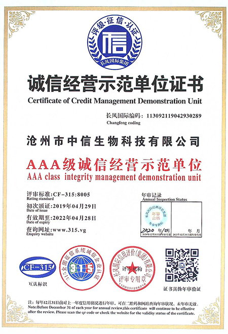 滄州市中信生物科技有限公司位于滄州市滄縣舊州古鎮(zhèn),東臨渤海灣,緊靠生態(tài)南排河,南靠石黃高速,北接朔黃鐵路,交通便利,環(huán)境清新。 我公司是集、生產(chǎn)、銷(xiāo)售、服務(wù)于一體的綜合型企業(yè)。公司下轄飼料及飼料添加劑部和環(huán)境治理項(xiàng)目部。公司擁有經(jīng)驗(yàn)豐富的技術(shù)人員和完善的檢驗(yàn)設(shè)備,其中有博士生6人,碩士8人,中農(nóng)藝師3人,推進(jìn)新產(chǎn)品的。 我公司擁有嚴(yán)格的質(zhì)量管理體制,建立起公司-車(chē)間-班組的質(zhì)量監(jiān)測(cè)控制網(wǎng)絡(luò),嚴(yán)格按照規(guī)范生產(chǎn),產(chǎn)品質(zhì)量放心。 滄州市中信生物科技有限公司將秉承“真誠(chéng)仁信,勤正厚遠(yuǎn)”的企業(yè)精神,“和諧、創(chuàng)新、感恩、共贏(yíng)”的企業(yè)宗旨,不斷為提高產(chǎn)品質(zhì)量、服務(wù)水平以及經(jīng)濟(jì)和企業(yè)的可持續(xù)性發(fā)展而不懈努力!