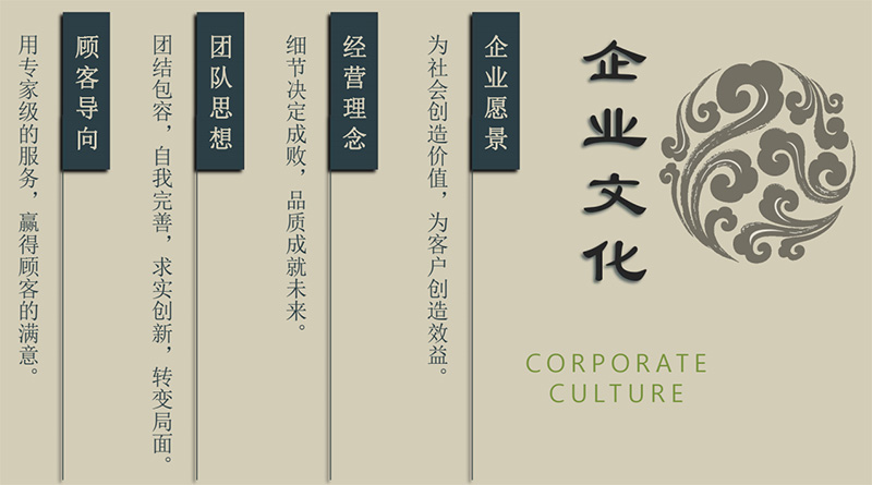 企業(yè)宗旨:為顧客創(chuàng)造價值,為企業(yè)創(chuàng)造效益,為員工創(chuàng)造前途,為社會創(chuàng)造繁榮。